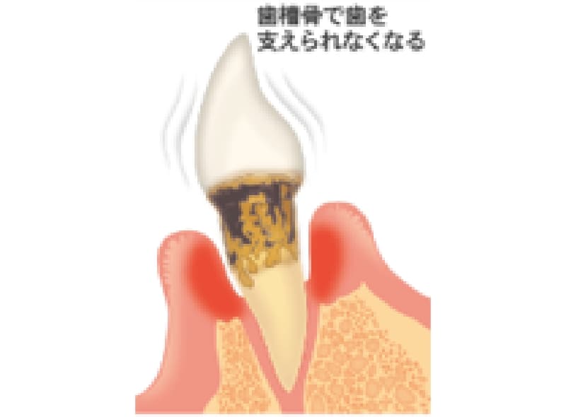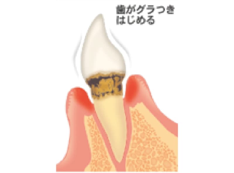 ⑤最終的には上下にもぐらつくようになり、抜歯するなどの処置が必要になります。